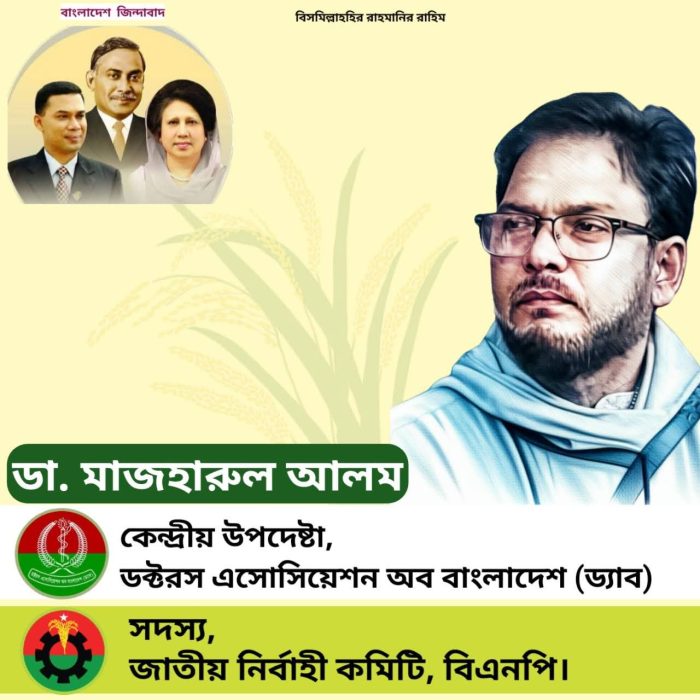 গাজীপুর-২ আসনের নয়নের মণি, স্বচ্ছ ও আদর্শ রাজনৈতিক ব্যক্তিত্ব, জাতীয় নির্বাহী কমিটির সদস্য এবং গাজীপুর-২ আসনের সম্ভাব্য সংসদ সদস্য পদপ্রার্থী ডা. মাজহারুল আলমকে বিএনপির অঙ্গ ও সহযোগী সংগঠন “ডক্টরস অ্যাসোসিয়েশন অব বাংলাদেশ (ড্যাব) এর কেন্দ্রীয় উপদেষ্টা হিসেবে মনোনীত করা হয়েছে। এই মনোনয়নের মাধ্যমে বিএনপির রাজনীতিতে একজন সৎ, শিক্ষিত ও জনপ্রিয় নেতৃত্বের স্বীকৃতি আরও সুদৃঢ় হলো বলে গাজীপুরবাসী মনে করছেন। গাজীপুরবাসীর পক্ষ থেকে বিএনপির মাননীয় ভারপ্রাপ্ত চেয়ারম্যান জনাব তারেক রহমানকে আন্তরিক কৃতজ্ঞতা ও ধন্যবাদ জানানো হয়েছে ডা. মাজহারুল আলমের মতো একজন যোগ্য নেতাকে এই গুরুত্বপূর্ণ দায়িত্বে মনোনীত করার জন্য। নবনির্বাচিত কেন্দ্রীয় উপদেষ্টা ডা. মাজহারুল আলমকে গাজীপুর মহানগরবাসী, স্থানীয় বিএনপি নেতৃবৃন্দ ও সাধারণ জনগণ অভিনন্দন ও শুভেচ্ছা জানিয়েছেন। তারা আশা প্রকাশ করেছেন, তিনি তার মেধা, সততা ও নেতৃত্বগুণ দিয়ে ড্যাবসহ জাতীয় পর্যায়ে স্বাস্থ্য ও রাজনৈতিক অঙ্গনে আরও গুরুত্বপূর্ণ ভূমিকা পালন করবেন। গাজীপুরের রাজনৈতিক মহল ও স্থানীয় বিএনপি নেতৃবৃন্দ বলেছেন, ডা. মাজহারুল আলম কেবল একজন রাজনীতিক নন, তিনি একজন মানবিক ডাক্তার, যিনি সর্বদা মানুষের পাশে থাকেন। তার এই দায়িত্বপ্রাপ্তি গাজীপুরের মানুষের জন্য গৌরবের।