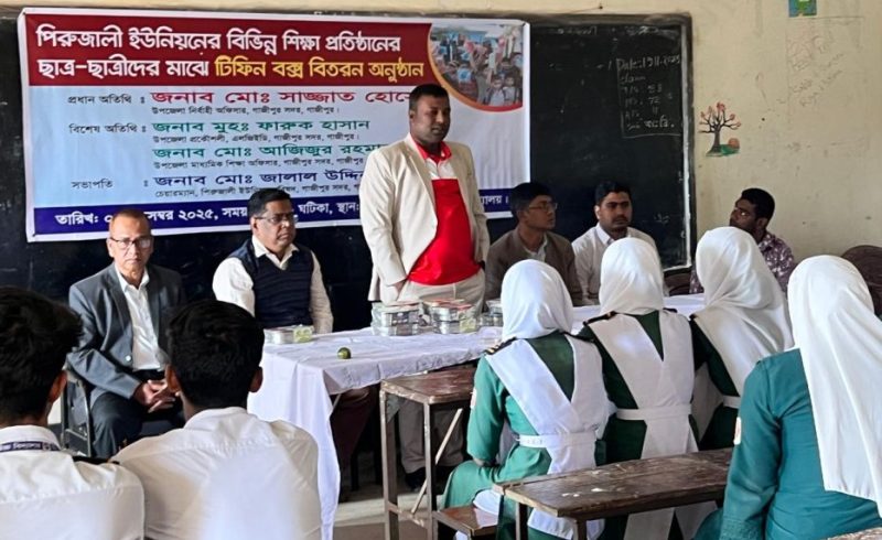 পিরুজালী ইউনিয়নে শিক্ষার্থীদের মাঝে টিফিন বক্স বিতরণ: সুস্বাস্থ্য ও শৃঙ্খলাবদ্ধ বিদ্যালয় জীবন গঠনে উদ্যোগ