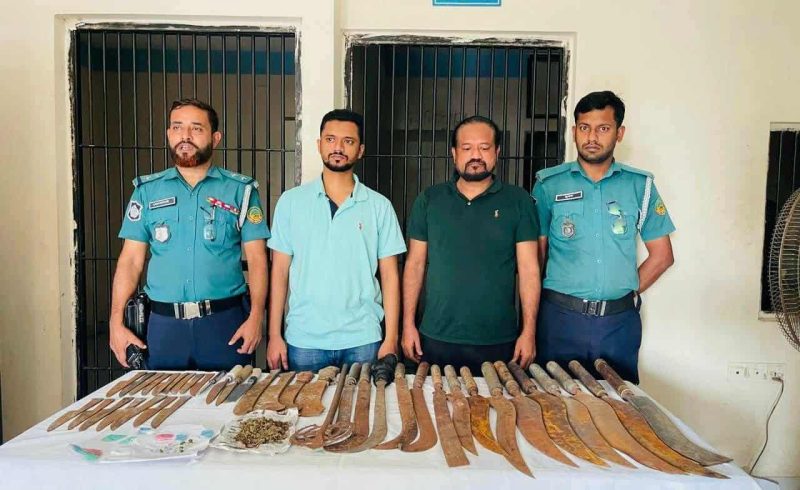 গাজীপুরে যৌথ বাহিনীর অভিযানে দেশীয় অস্ত্র ও মাদকসহ দুইজন আটক