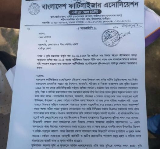 গাজীপুরে সার ডিলারদের নীতিমালা বহাল ও কমিশন বাড়াতে স্মারকলিপি