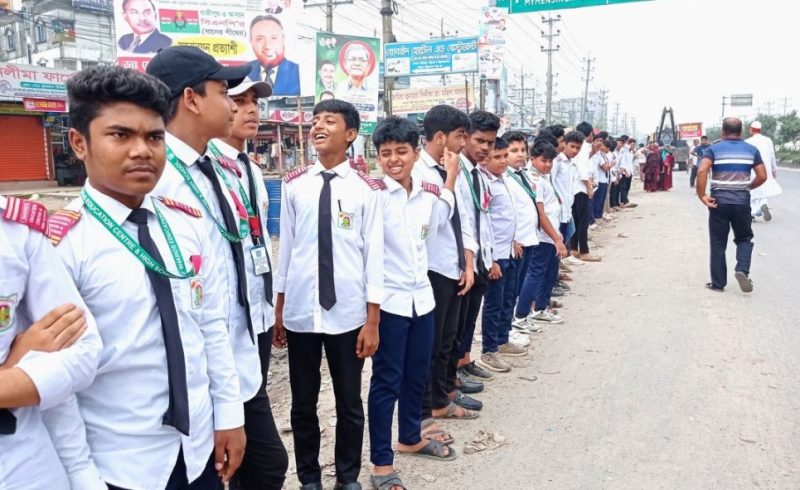 শ্রীপুরে পৃথক স্থানে ফুটওভার ব্রিজ নির্মাণের দাবিতে মানববন্ধন করেন ছাত্র-ছাত্রী ও সাধারণ জনতা।