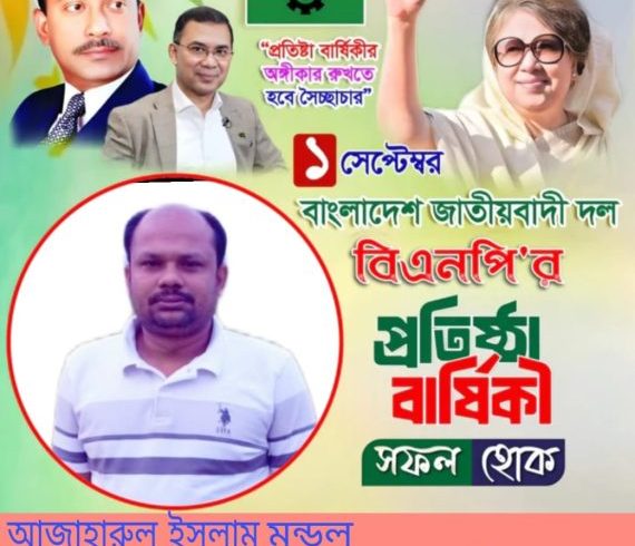 বিএনপির ৪৭তম প্রতিষ্ঠা বার্ষিকী উপলক্ষে শুভেচ্ছা জানান আজাহারুল ইসলাম মন্ডল